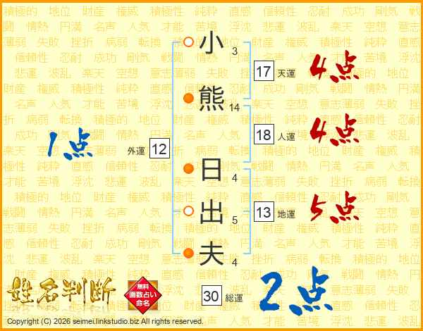 小(3画)熊(14画) 日(4画)出(5画)夫(4画)