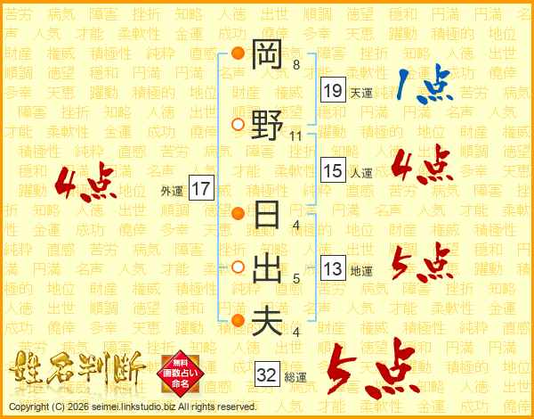 岡野日出夫さんの総運は32画の5点!