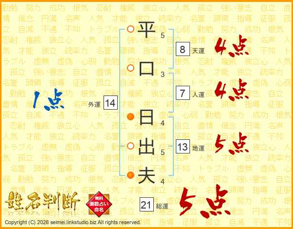 平口日出夫さんの総運は21画の5点!