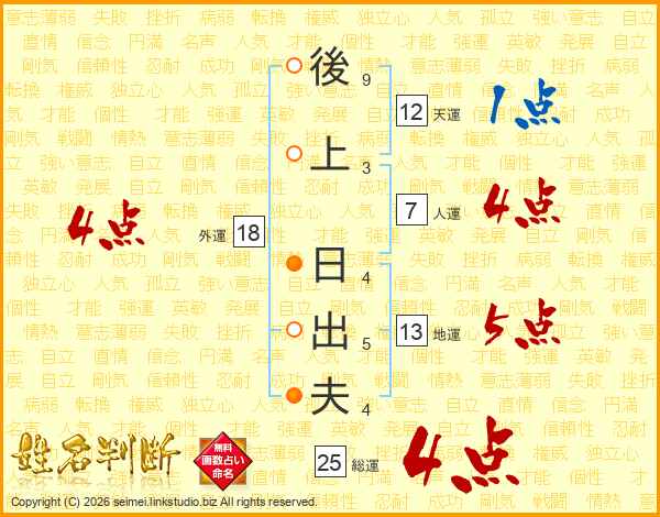後上日出夫さんの人運は7画の4点!