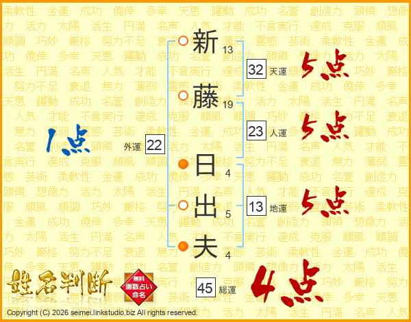 新藤日出夫さんの総運は45画の4点!