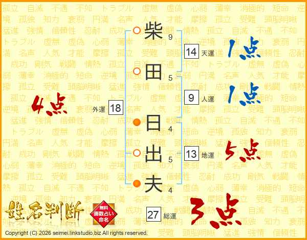 柴(9画)田(5画) 日(4画)出(5画)夫(4画)