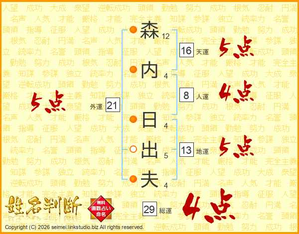 森内日出夫さんの総運は29画の4点!