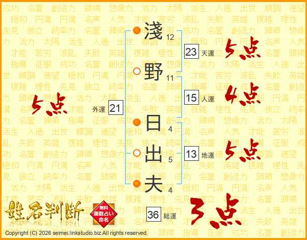 淺野日出夫さんの天運は23画の5点!