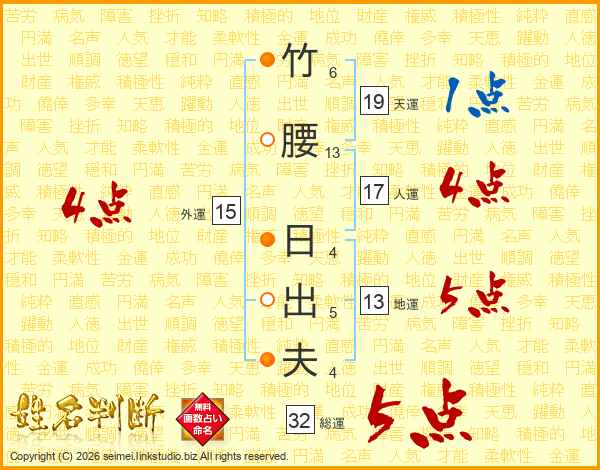 竹(6画)腰(13画) 日(4画)出(5画)夫(4画)