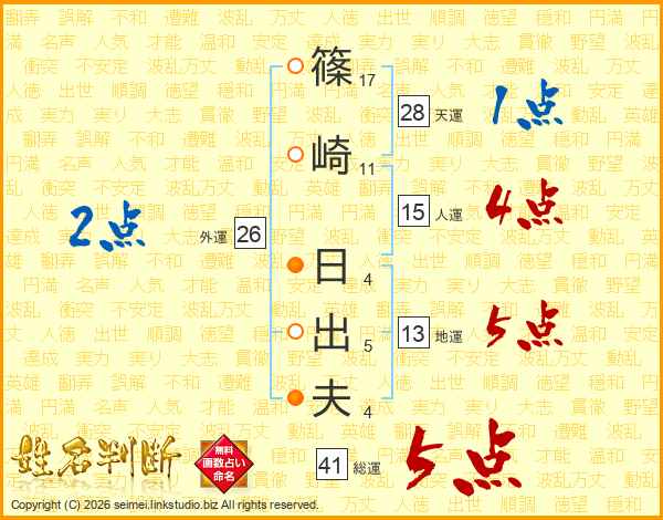 篠崎日出夫さんの総運は41画の5点!