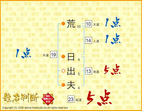 荒日出夫さんの総運は23画の5点!