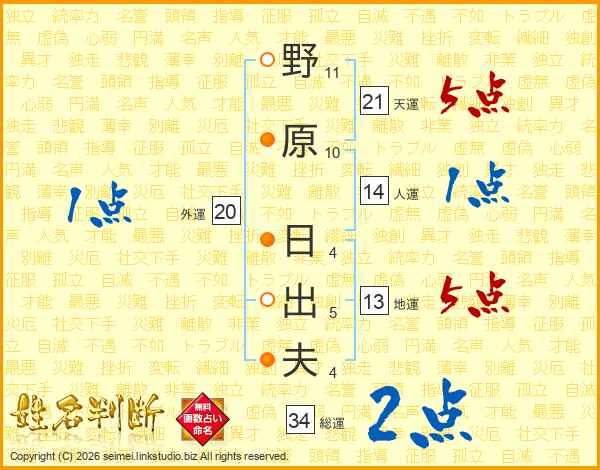 野原日出夫さんの天運は21画の5点!