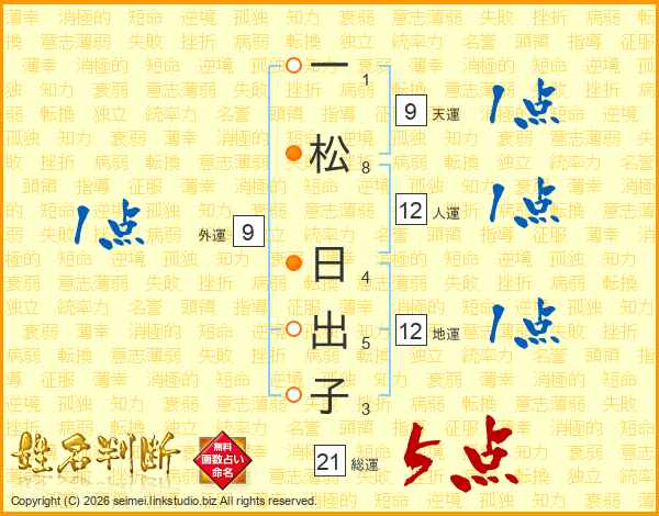 一(1画)松(8画) 日(4画)出(5画)子(3画)