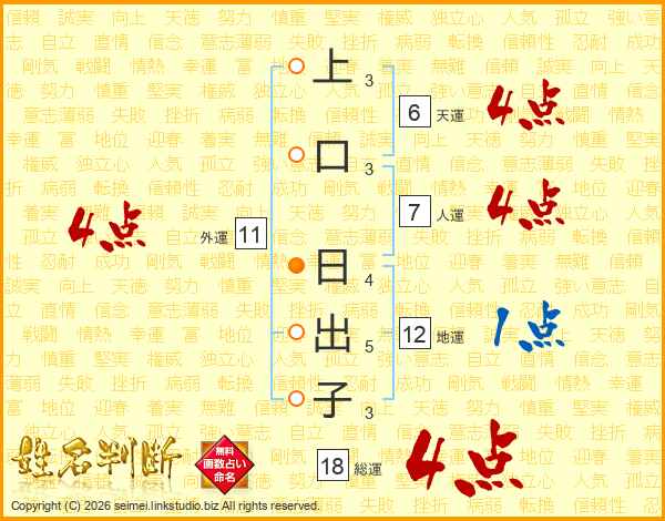 上口日出子さんの総運は18画の4点!