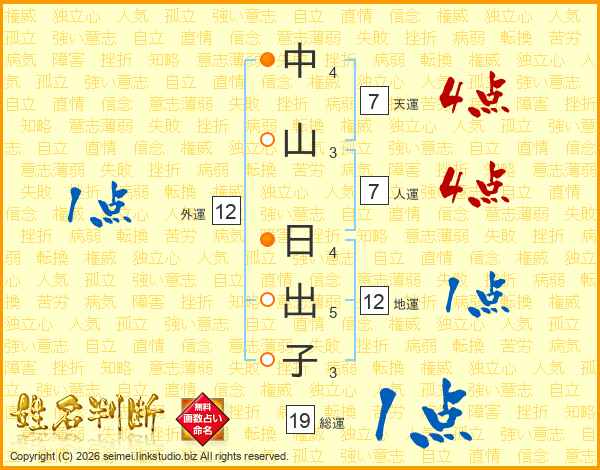 中(4画)山(3画) 日(4画)出(5画)子(3画)