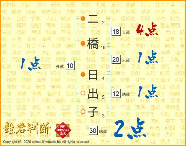 二(2画)橋(16画) 日(4画)出(5画)子(3画)