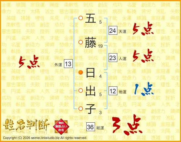 五(5画)藤(19画) 日(4画)出(5画)子(3画)