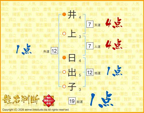 井上日出子さんの天運は7画の4点!