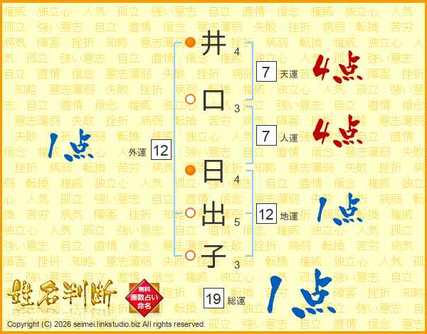井口日出子さんの人運は7画の4点