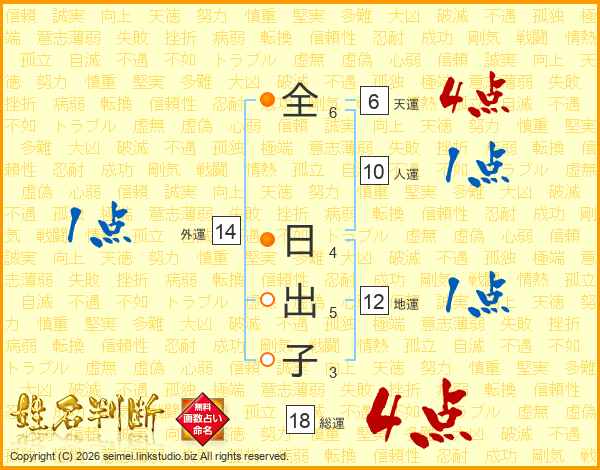 全日出子さんの総運は18画の4点!