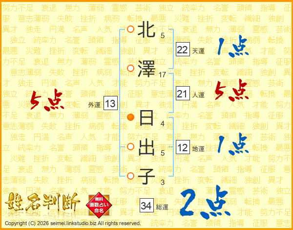 北澤日出子さんの天運は22画の1点!