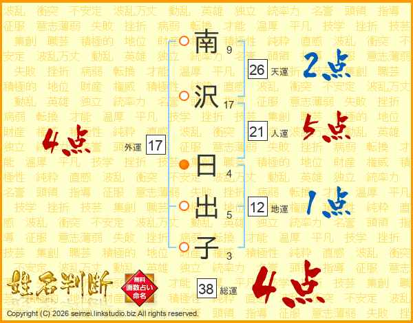 南沢日出子さんの総運は38画の4点!