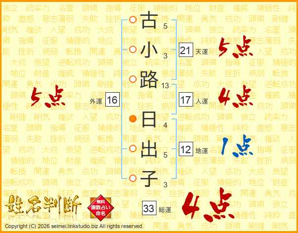 古小路日出子さんの総運は33画の4点!