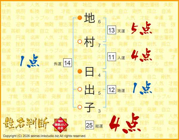 地村日出子さんの総運は25画の4点!