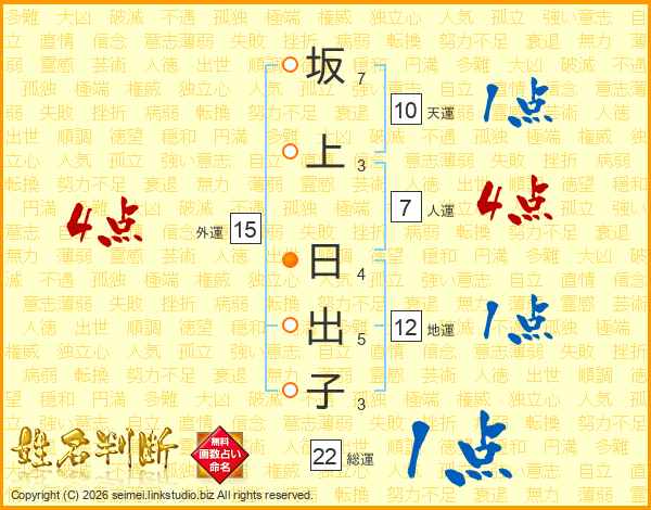 坂上日出子さんの人運は7画の4点!