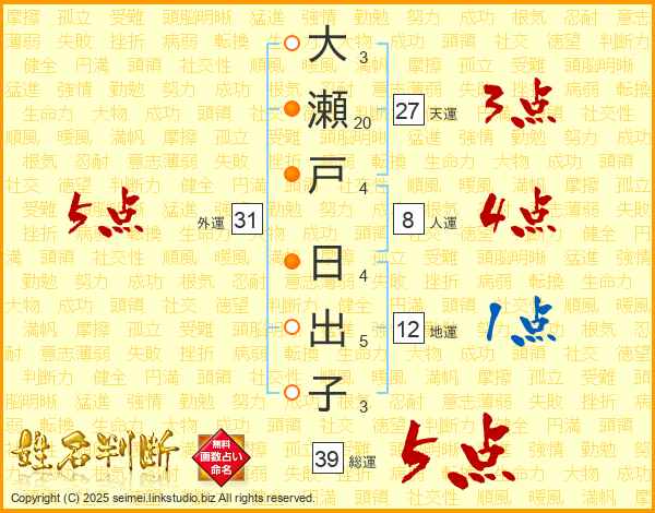 大瀬戸日出子さんの総運は39画の5点!