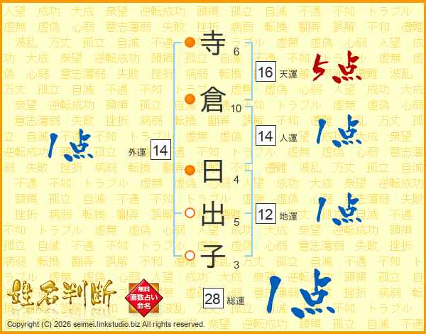 寺倉日出子さんの天運は16画の5点!