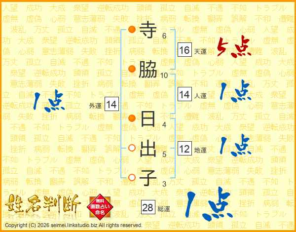 寺脇日出子さんの総運は28画の1点!