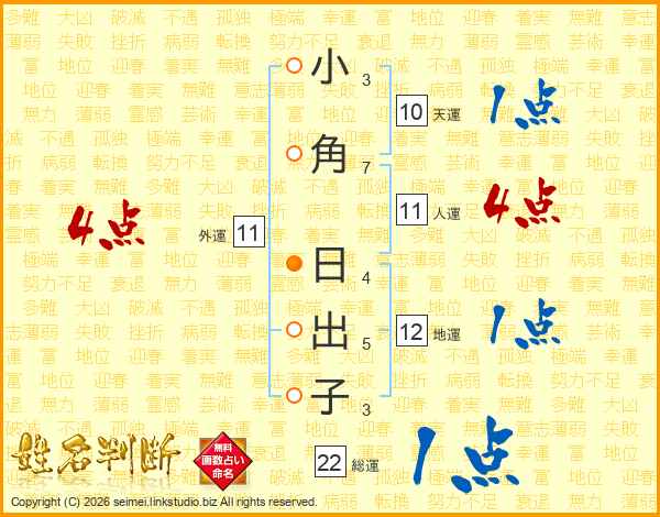 小(3画)角(7画) 日(4画)出(5画)子(3画)