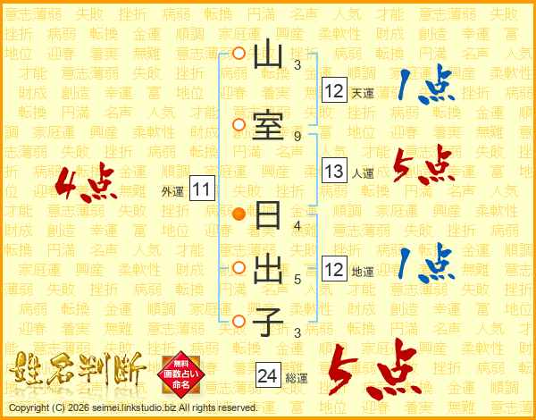 山室日出子さんの総運は24画の5点!