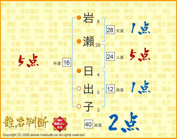 岩瀬日出子さんの総運は40画の2点!