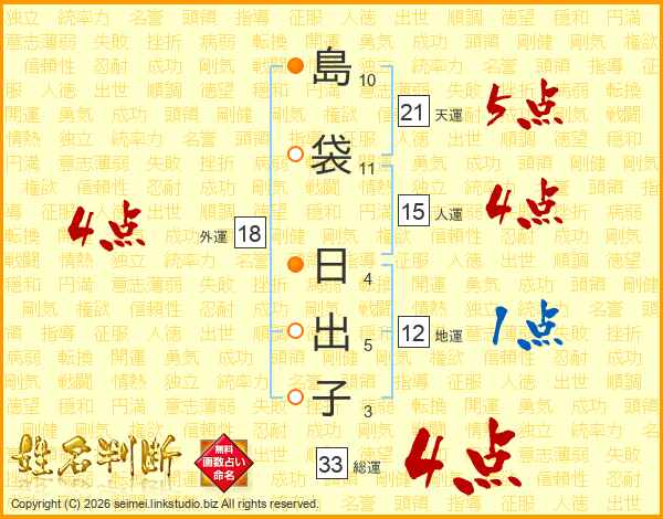 島袋日出子さんの総運は33画の4点!