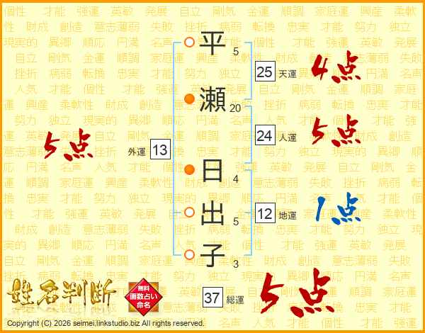 平瀬日出子さんの総運は37画の5点!