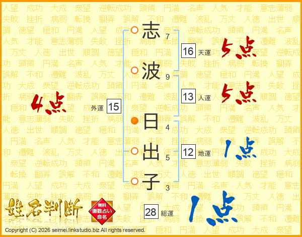 志(7画)波(9画) 日(4画)出(5画)子(3画)