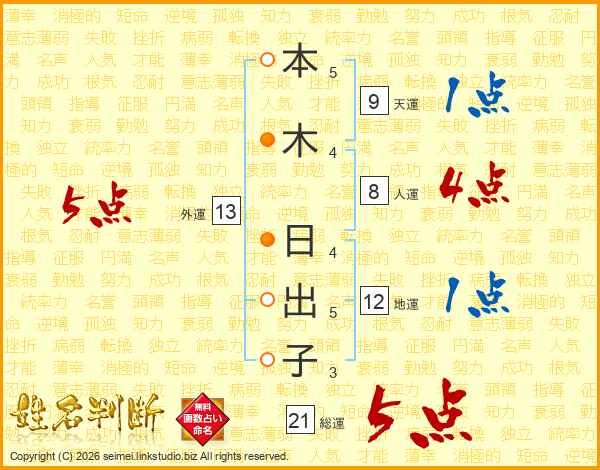 本木日出子さんの総運は21画の5点!