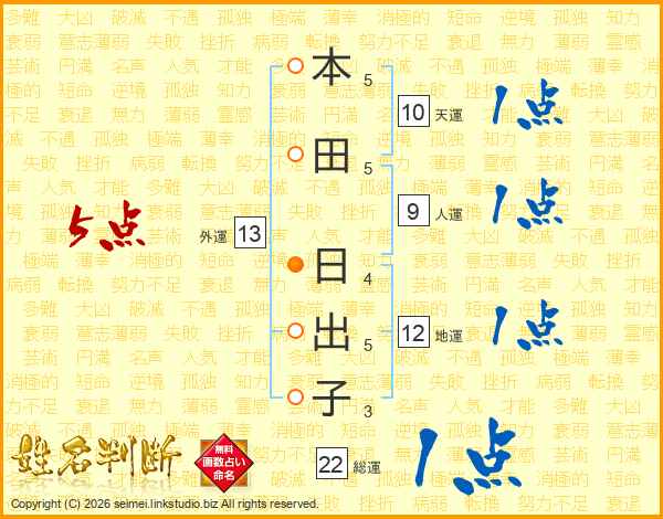 本田日出子さんの外運は13画の5点!