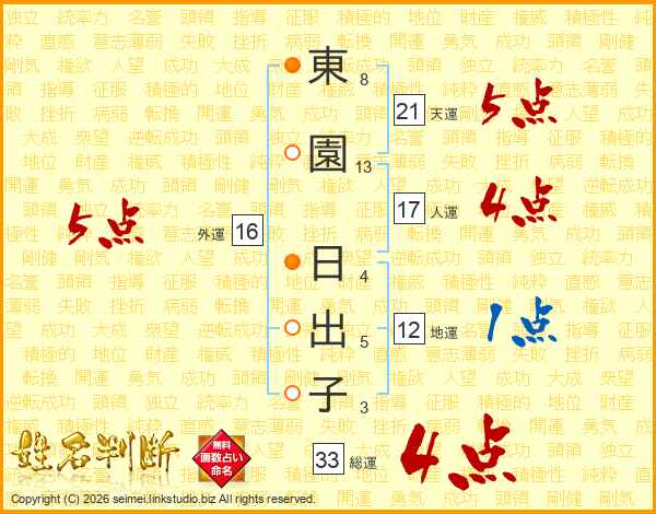 東園日出子さんの総運は33画の4点!