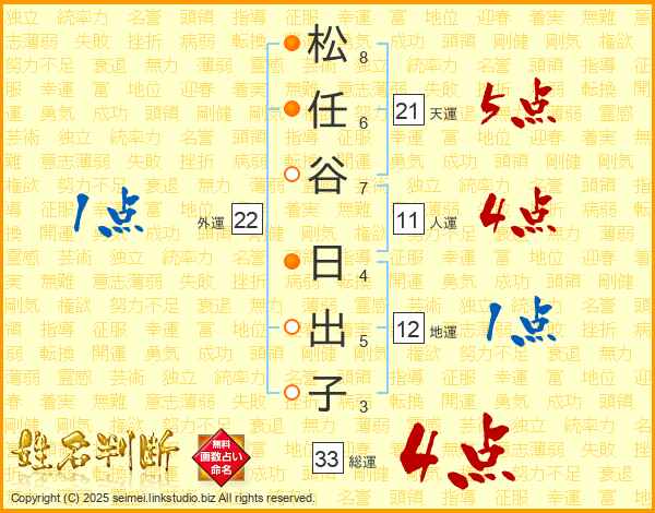 松(8画)任(6画)谷(7画) 日(4画)出(5画)子(3画)
