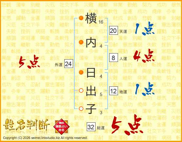 横内日出子さんの総運は32画の5点!