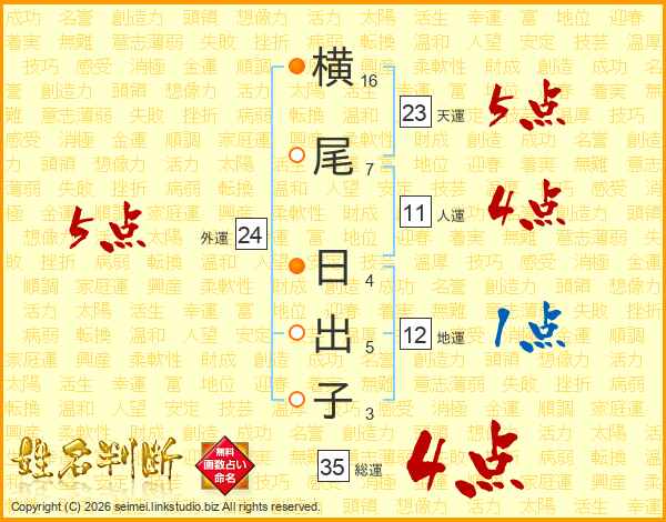 横尾日出子さんの総運は35画の4点!