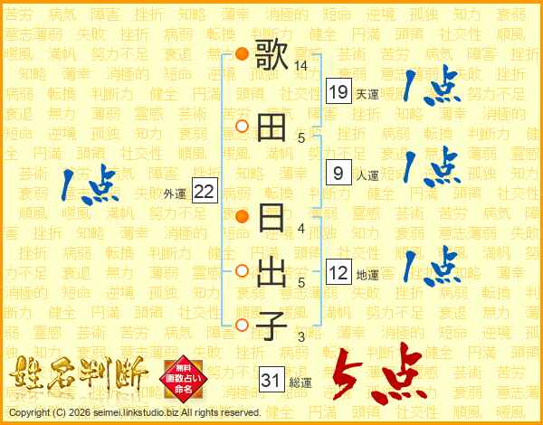 歌(14画)田(5画) 日(4画)出(5画)子(3画)