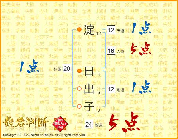 淀日出子さんの総運は24画の5点!