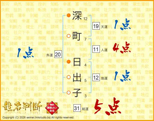 深町日出子さんの総運は31画の5点!