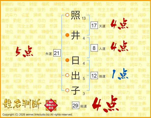 照井日出子さんの総運は29画の4点!