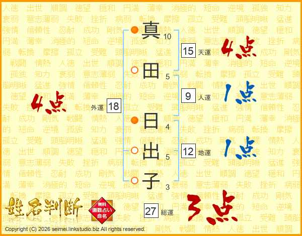 真田日出子さんの総運は27画の3点!