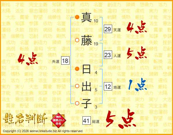 真藤日出子さんの総運は41画の5点!