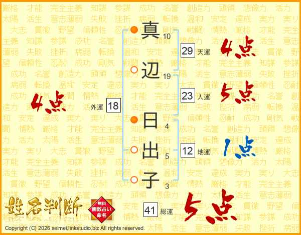 真辺日出子さんの総運は41画の5点!