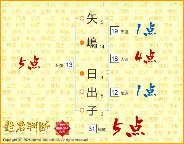 矢嶋日出子さんの総運は31画の5点!
