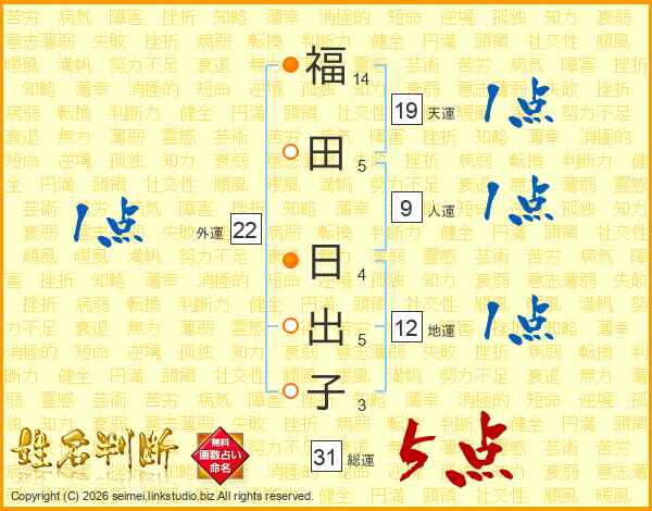 福(14画)田(5画) 日(4画)出(5画)子(3画)