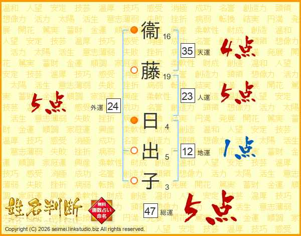 衞藤日出子さんの総運は47画の5点!